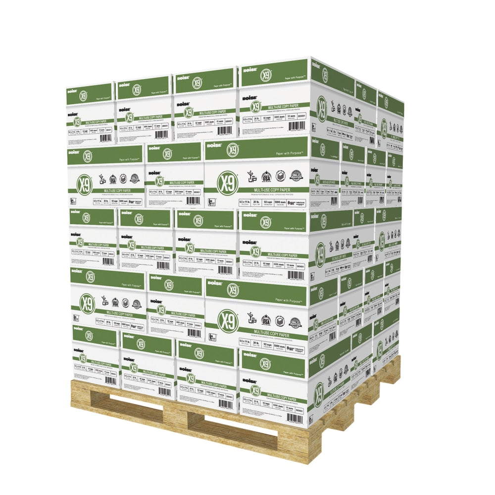 Boise X-9 Multi-Use Printer & Copy Paper, White, Letter (8.5in x 11in), 200000 Sheets Per Pallet, 20 Lb, 92 Brightness, 0X9001SKD-DA, Case Of 10 Reams