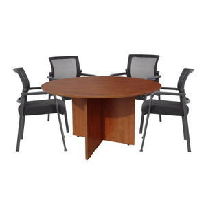 - Components include(1) 42" round table and (4) mesh back 4-legged guest chairs