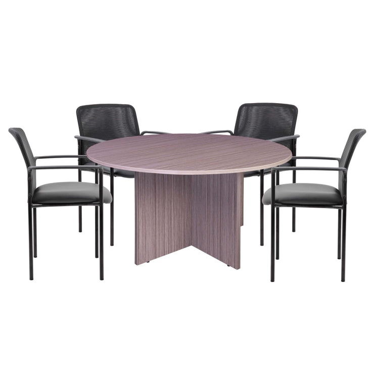 Boss Office Products 42" Round Table & Set of 4 Stackable Mesh Back/Caressoft Seat Guest Chairs.