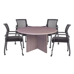 Boss Office Products 47" Round Table & Set of 4 Mesh Guest Chairs with Casters.