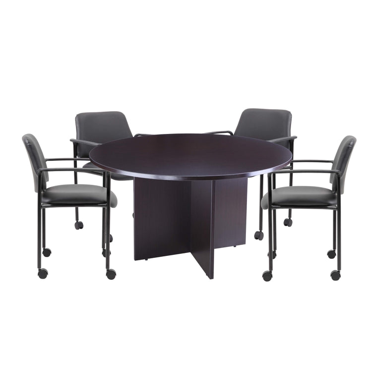 Boss Office Products Round Table And 4 Stackable Guest Chairs Set, Mocha/Black