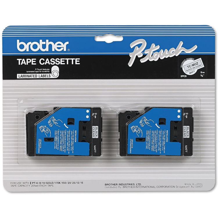 Brother TCM-OZ Black-On-Clear Matte Tapes, 0.38in x 25ft, Pack Of 2