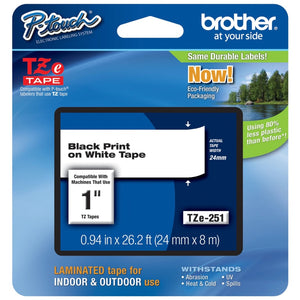 - Brother TZe-251 black-on-white tape is quality tape for your label maker. Brother TZe-251 tape is bold and easy to read.