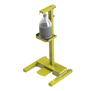 - Foot lever action means no hands needed to dispense sanitizer.
