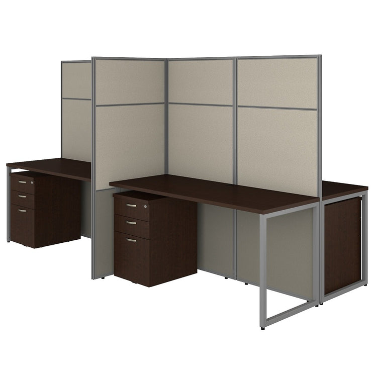 Bush Business Furniture Easy Office 60inW 4-Person Cubicle Desk With File Cabinets And 66inH Panels, Mocha Cherry, Standard Delivery