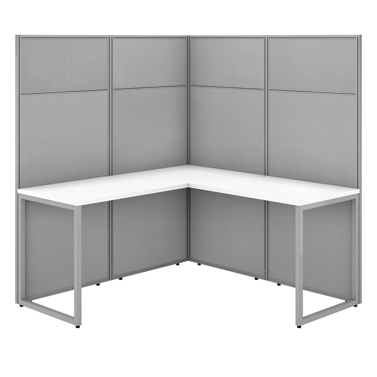 Bush Business Furniture Easy Office 60inW L-Shaped Cubicle Desk Workstation With 66inH Panels, Pure White/Silver Gray, Standard Delivery