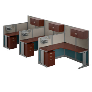Bush Business Furniture Office in an Hour 3 Person L Shaped Cubicle Workstations, Hansen Cherry, Standard Delivery