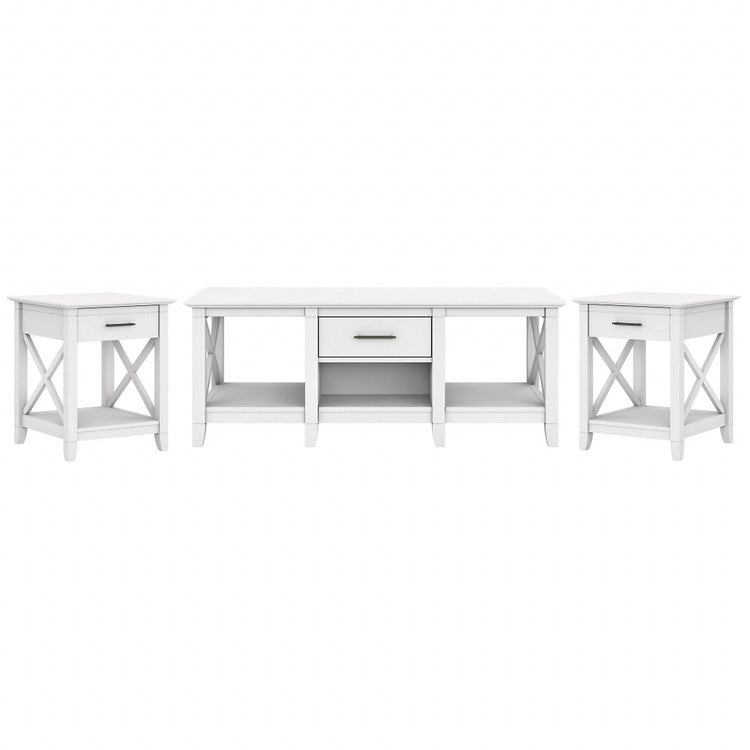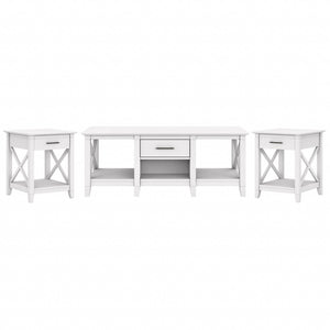 Bush Furniture Key West Coffee Table With Set Of 2 End Tables, Pure White Oak, Standard Delivery