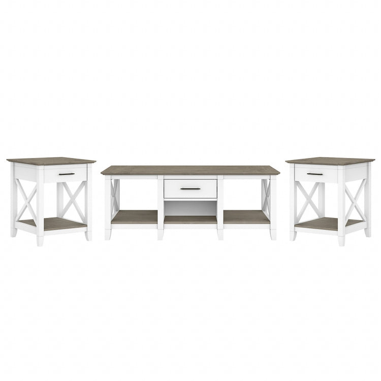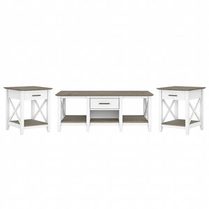 Bush Furniture Key West Coffee Table With Set Of 2 End Tables, Shiplap Gray/Pure White, Standard Delivery
