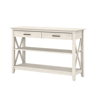 Bush Furniture Key West Console Table With Drawers And Shelves, Linen White Oak, Standard Delivery