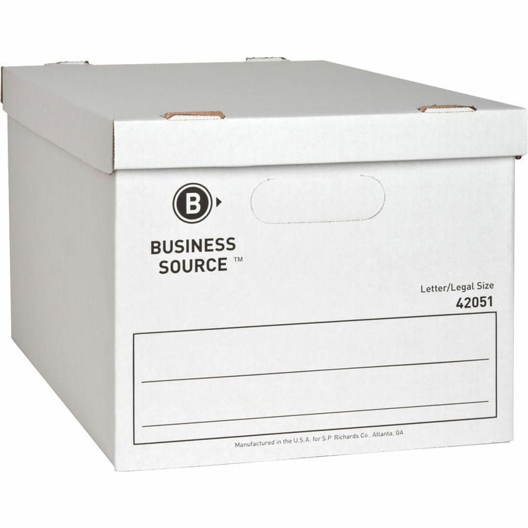 Business Source Economy Storage Box with Lid - External Dimensions: 12in Width x 15in Depth x 10inHeight - 350 lb - Media Size Supported: Legal, Letter - Light Duty - Stackable - White - For File - Recycled - 12 / Carton