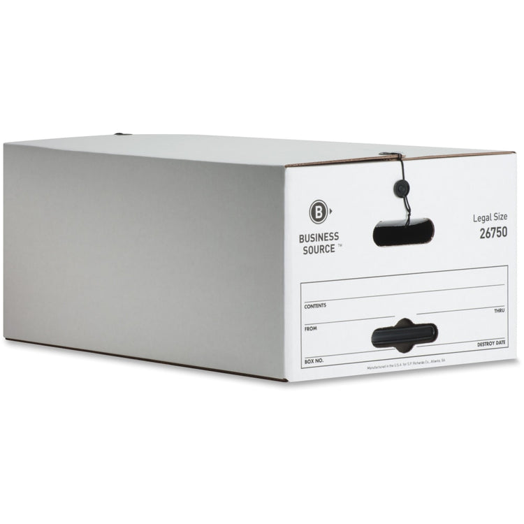 Business Source Light Duty Legal Size Storage Box - External Dimensions: 15in Width x 24in Depth x 10inHeight - Media Size Supported: Legal - String/Button Tie Closure - Light Duty - Stackable - White - For File - Recycled - 12 / Carton