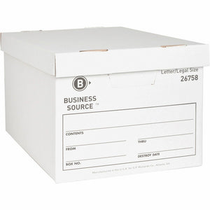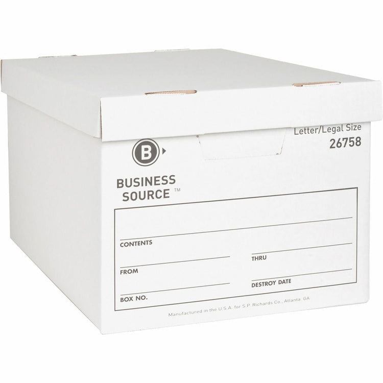 Business Source Medium-Duty Storage Boxes With Lift-Off Lids, Legal/Letter Size, 12in x 15in x 10in, White, Box Of 12