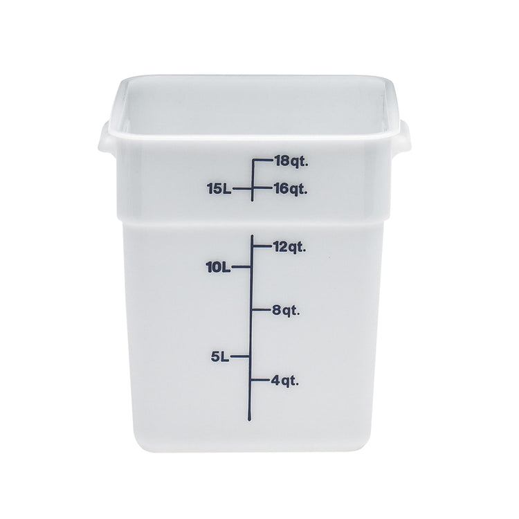 Maximize food-storage space with Cambro Poly CamSquare Storage Containers. These 18-qt containers are built to last to suit the needs of fast-paced kitchen settings.