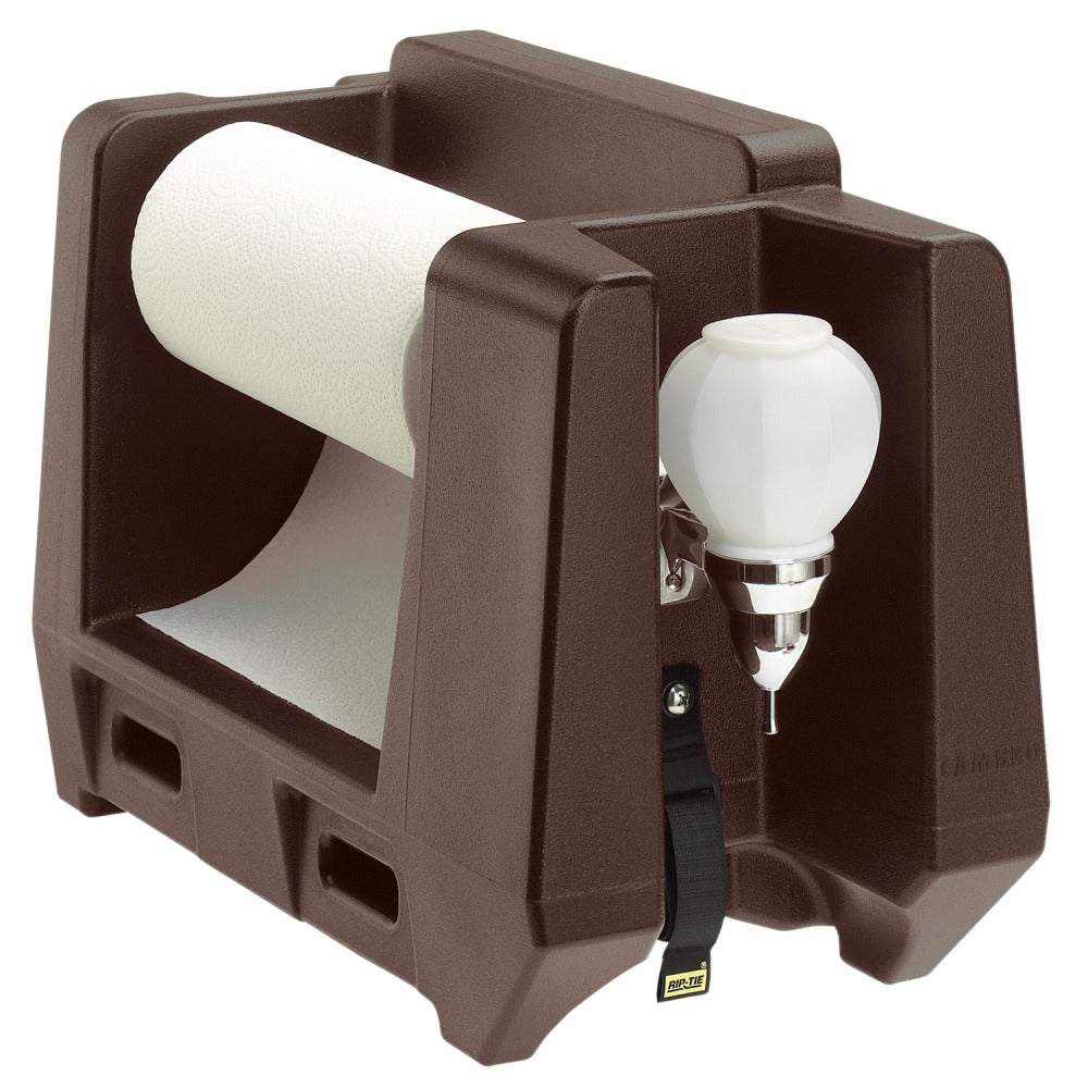 Cambro Soap Dispenser And Paper Towel Roll Holder For Camtainer, 14-3/8inH x 10-1/8inW x 19-3/8inD, Dark Brown