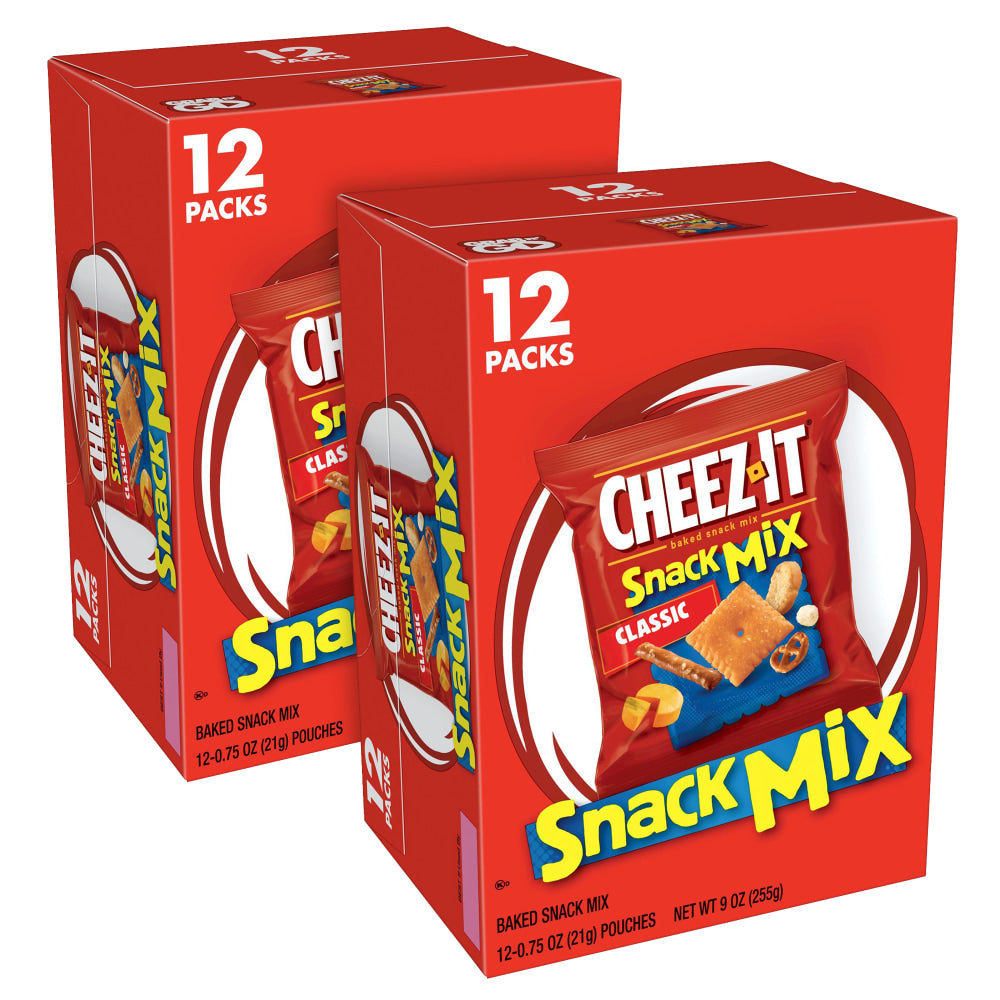 Cheez-It Crackers Snack Mix Tray, 0.75 Oz, 12 Pouches Per Box, Pack Of 2 Boxes