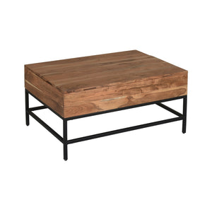 Set the Coast to Coast Darius Cocktail/Coffee Table in your living space to create the industrial vibe you're looking for. The acacia wood and iron construction helps ensure long-lasting beauty. The top can be lifted up, providing a great storage area for remote controls, blankets, magazines and more.