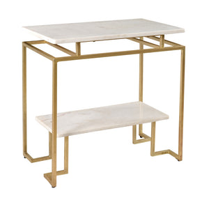 Designed with creamy marble surfaces that seem to float on the angular metal frame, this Coast to Coast Marble Accent Table lets you make a sophisticated statement. There's plenty of room for a few small plants, a lamp and framed photos on the tabletop and shelf, giving your space the elegance you prefer and the display space you need to add those personal touches.
