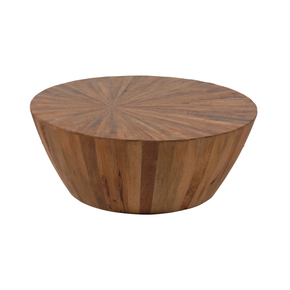 If you need transitional flair, look to the Coast to Coast Sunny Cocktail/Coffee Table. This cocktail table is finished on all sides and features durable mango wood construction. The offset sunburst pattern on the top is sure to be a talking point with guests.
