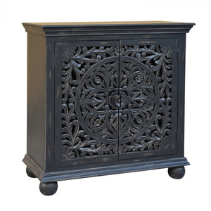 You can create a traditional décor style with help from the Coast to Coast Yasmine 2-Door Accent Cabinet. The cabinet features floral carved doors for a beautiful, intricate appearance. The mango wood frame offers durability and a dependability.