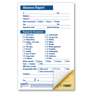 - 2-part design lets you give a copy to the employee and keep a copy as a record of the absence.