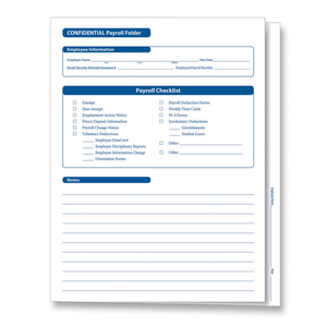 Place confidential payroll information in these folders to keep them separate from other personnel files. A checklist on each folder helps you keep track of documents as they are added.