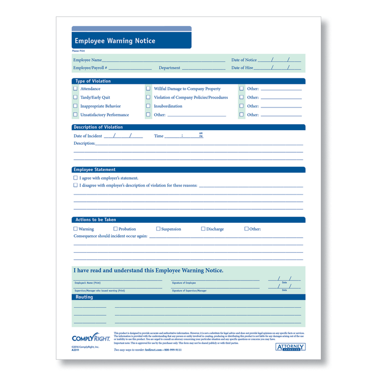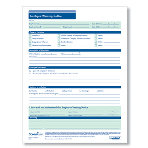 ComplyRight Employee Warning Reports, 8 1/2in x 11in, Pack Of 50
