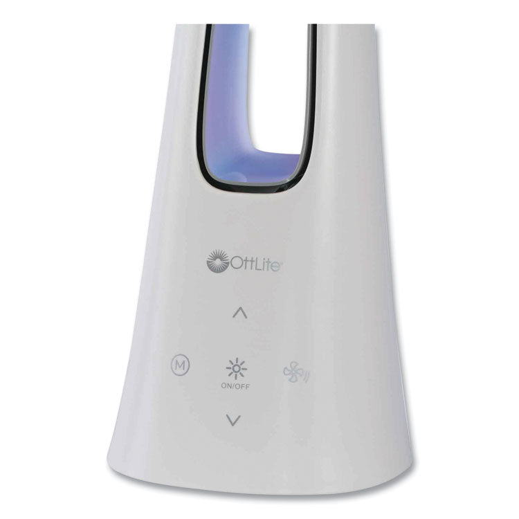 With the OttLite Cool Breeze LED Fan Lamp you get OttLite Natural Daylight LED Illumination and air circulation right at your fingertips with a fan that's integrated right into the base! There are three color modes (warm light, cool light and natural daylight) and five brightness settings to brighten your work area. A rubberized flexible neck allows you to position light exactly where it's needed. The three-speed bladeless fan features a cool illumination effect. And the touch activated panel controls selection of the light mode, brightness settings and fan speed. With OttLite Natural Daylight LED Illumination, you can see details clearly and reduce glare and eyestrain so you can do what you love, longer.