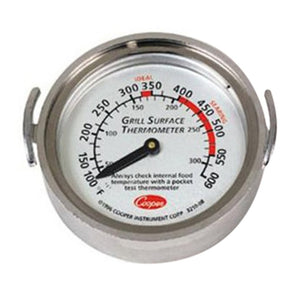 Grill hamburgers, steaks, vegetable skewers and other foods to perfection using this Cooper-Atkins Grill Surface Thermometer. Thanks to the clearly marked dial, it's easy to read the current temperature at a glance.