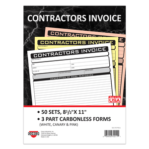 COSCO Contractor Invoice Business Form Book With Slip, 3-Part Carbonless, 8-1/2in x 11in, Book Of 50 Sets