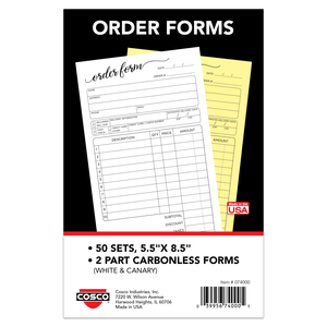 Take your customers' orders easily with this COSCO Order Form Book. The 2-part carbonless forms let you and the customer each have separate copies for your records.