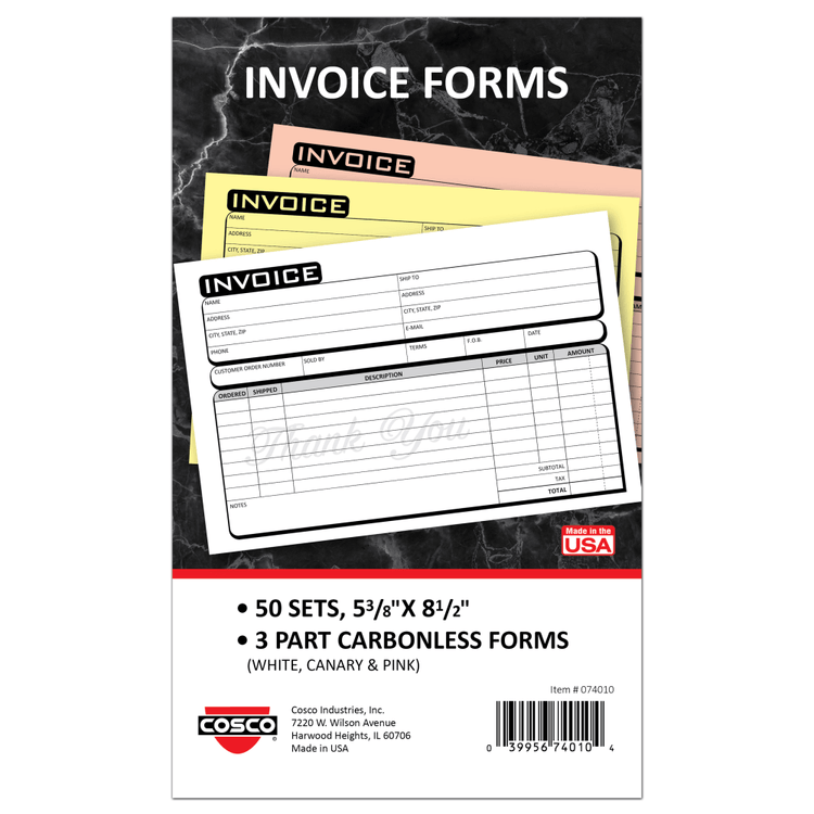 Keep track of invoices with this COSCO Service Invoice Form Book. Each 3-part carbonless form provides multiple copies for your business, the customer and another party to help ensure proper recordkeeping.
