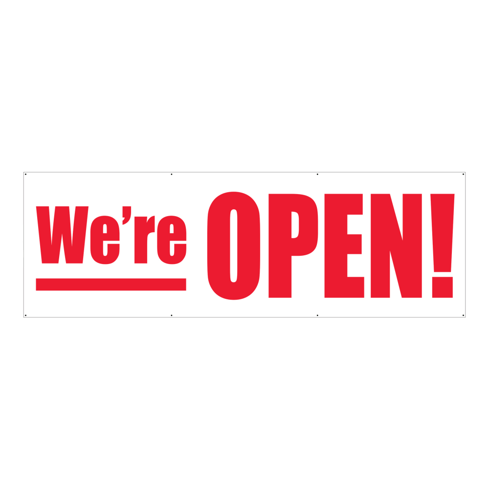 Cosco We are Open Vinyl Horizontal Banner, 2ft x 6ft, Red/White