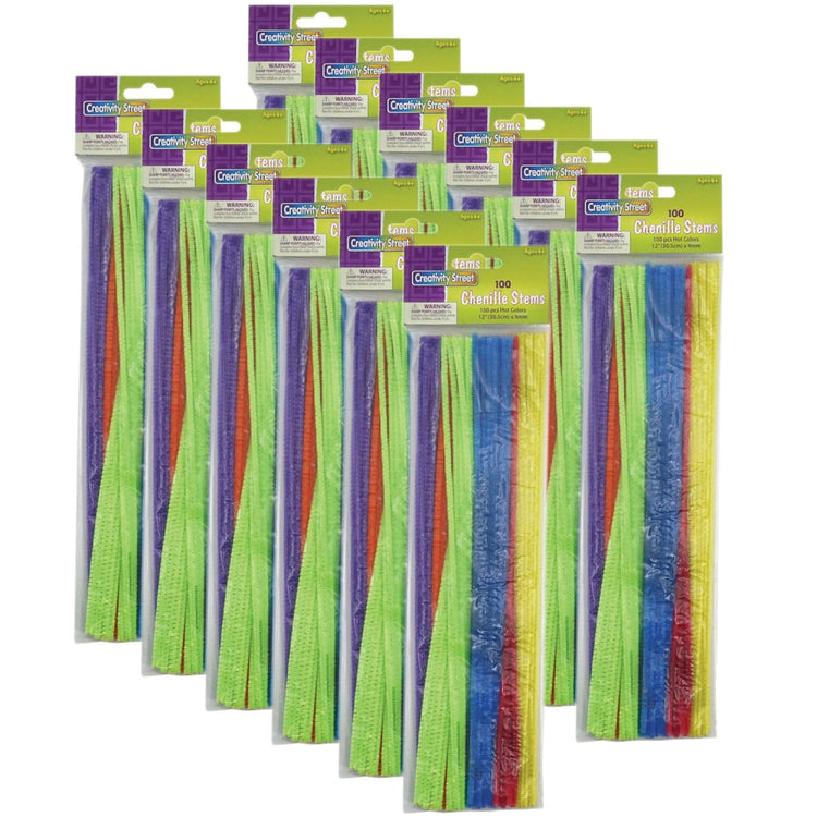 Creativity Street Regular Stems, 12in, Assorted Hot Colors, 100 Stems Per Pack, Set Of 12 Packs