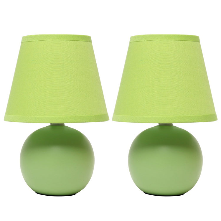 Creekwood Home Nauru Petite Ceramic Orb Base Table Lamp, 8-11/16inH, Green Shades/Green Bases, Set Of 2
