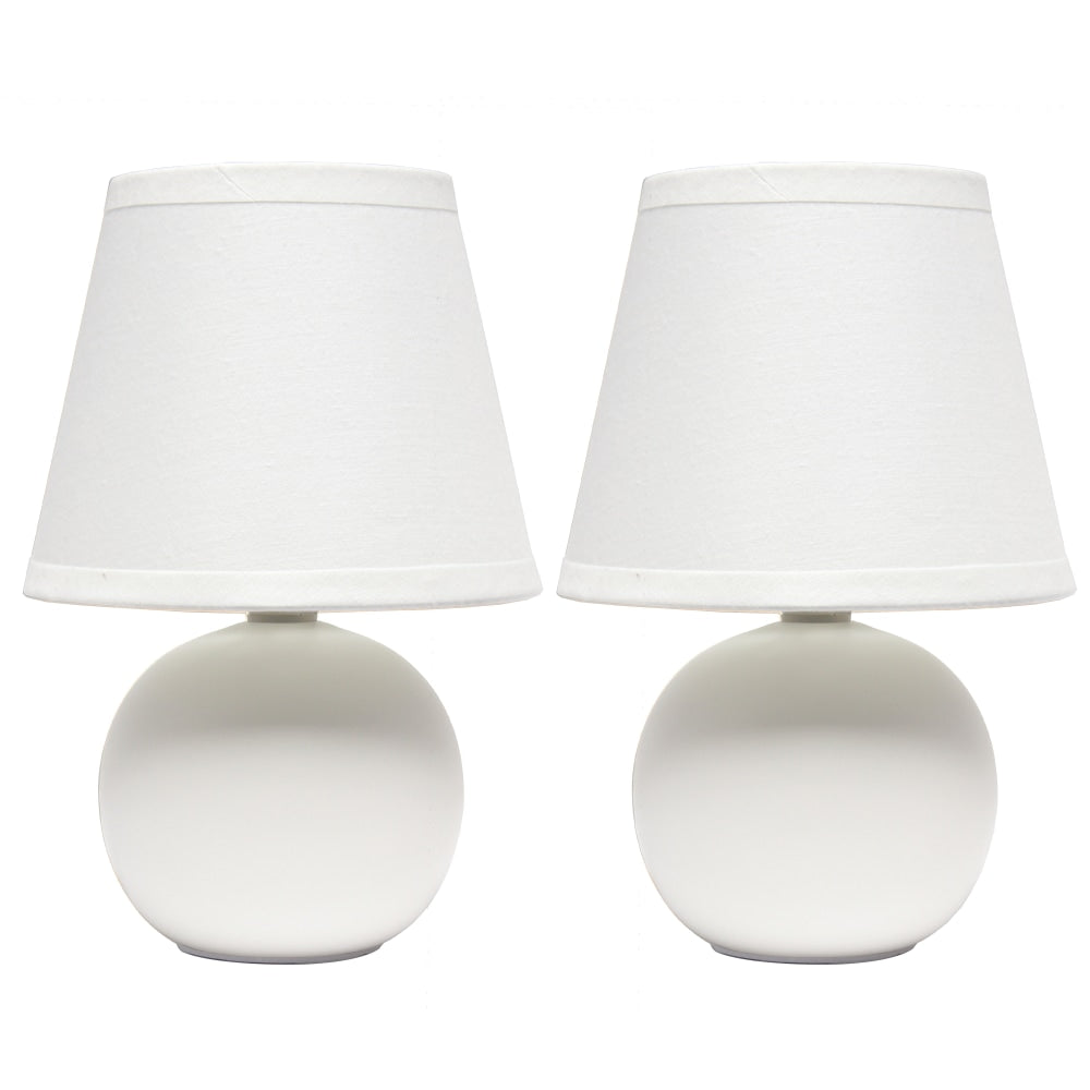 Creekwood Home Nauru Petite Ceramic Orb Base Table Lamp, 8-11/16inH, White Shades/White Bases, Set Of 2