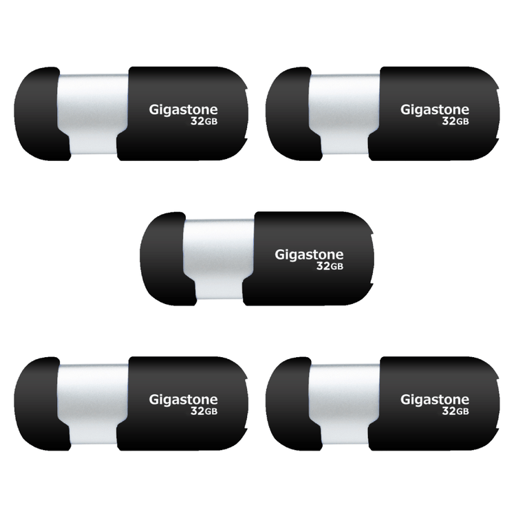 Dane-Elec Gigastone USB 2.0 Flash Drives, 32GB, Black/Silver, Pack Of 5 Flash Drives