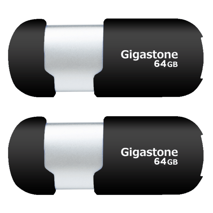 Dane-Elec Gigastone USB 2.0 Flash Drives, 64GB, Black/Silver, Pack Of 2 Flash Drives