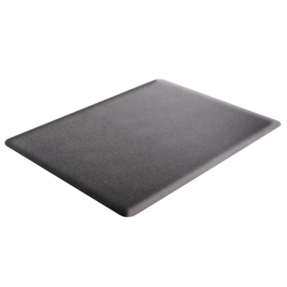 - With 3/8" thick anti-fatigue support foam, this mat is comfortable on the feet, promotes wellness and reduces fatigue while standing. It also protects flooring from wear and tear caused by wheeled office chairs.