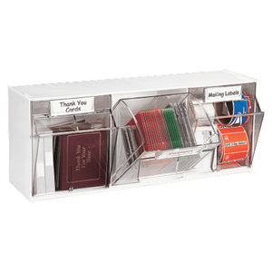 Deflecto Interlocking Horizontal Tilt Bin, 3 Bins, Small Size, 3 3/10in x 23 5/8in x 3 5/8in, White/Clear