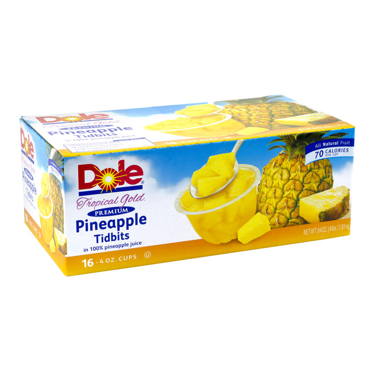 Dole Pineapple Tidbit Bowls, 4 Oz, Pack Of 16