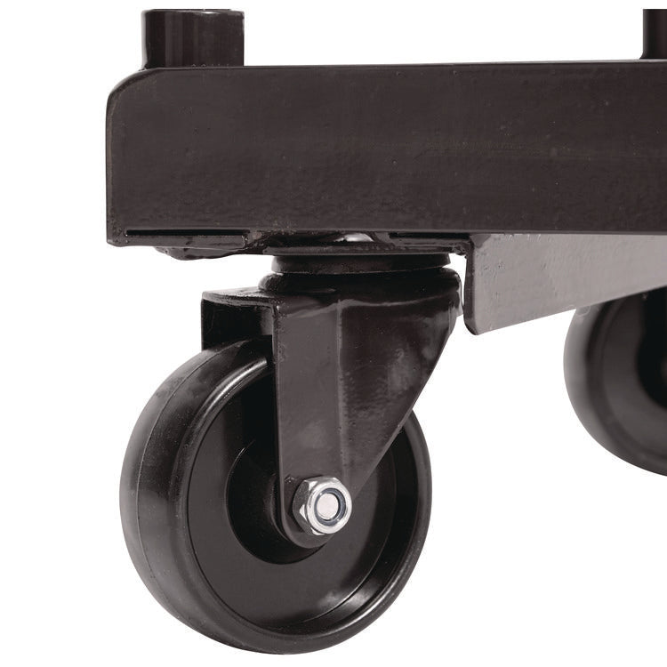 This Dolly can stack and transport up to 36 NPS 800 Series folding chairs. The durable 11-gauge powder-coated steel unit features four rubber casters (two that swivel) for easy mobility over nearly any surface. Each caster boasts a 275 lb weight capacity for a total of 1,100 lbs.