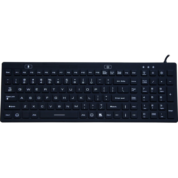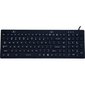 DSI WATERPROOF IP68 SILICONE FULL SIZE KEYBOARD WITH LED BACKLIT - Cable Connectivity - USB Interface - 100 Key - TouchPad - Windows - Black