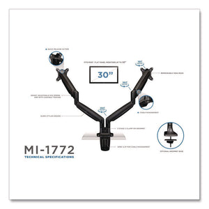 Dual Monitor Gas-Spring Mounting Arm, For 13" to 32" Monitors, 360 Degree Rotation, +/-45 Degree Tilt, Black, Supports 20 lb