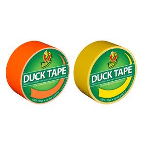 Duck Brand Duct Tape Rolls, 1.88in x 20 Yd/1.88in x 15 Yd., Yellow/Neon Orange, Pack Of 2 Rolls