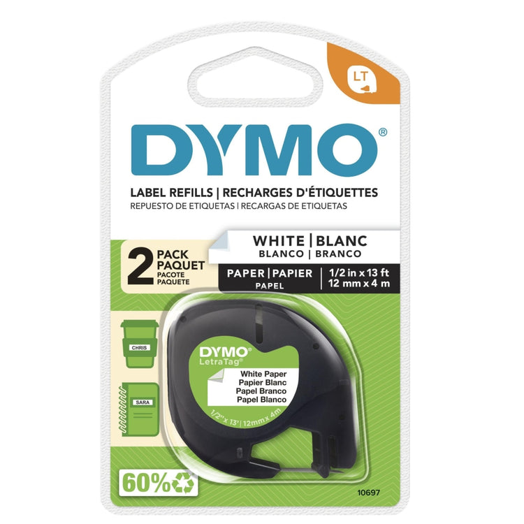 DYMO LT Paper Labels are tough and tear-resistant and print easy-to-see black text on white. Created specifically for your LetraTag label maker, they provide an economical solution for labeling almost anything, anywhere in your home.