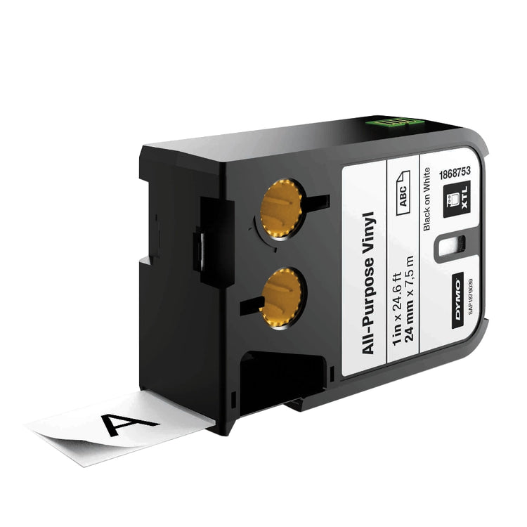 DYMO XTL All-Purpose Vinyl Label Cartridge, 1868753, 1in x 24 5/8ft Roll, Black/White