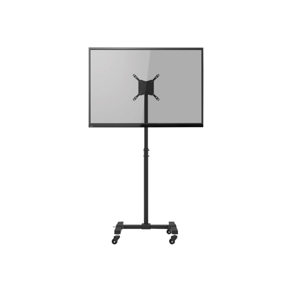 - Versatile height and tilt adjustments. Designed to accommodate a wide range of viewing preferences, this mobile TV stand offers height and tilt adjustments. Height can be easily adjusted to suit different environments and audience needs, while the tilt feature allows for 0° to 10° of tilt to reduce glare and provide the best viewing angle.