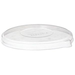 Make sure liquids and food items don't escape your bowls by using the Eco-Products WorldView Sugarcane Bowl Lids. These lids are made from PET for eco-conscious use and can be used with hot or cold meals.