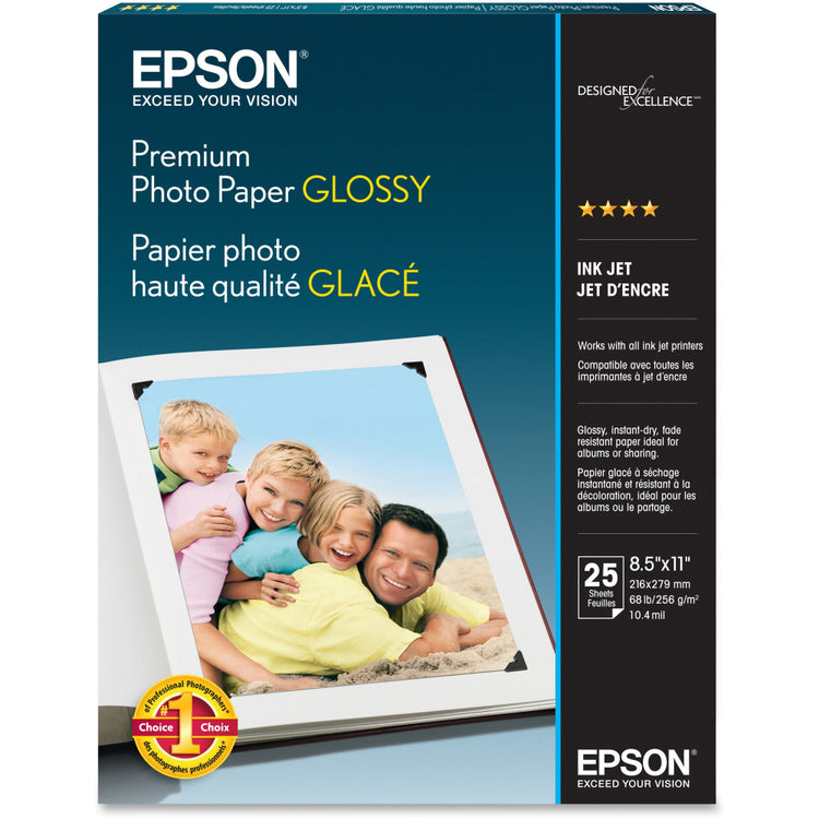 - Epson Premium photo paper has a high-gloss finish to keep your favorite pictures look great, even under a glass frame or in a photo album.